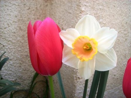 sympa! j'aime bien l'association tulipe/narcisse! j'en ai moi aussi fait une jardinière et j'attends que tout fleurissent, les tulipes commencent seulement