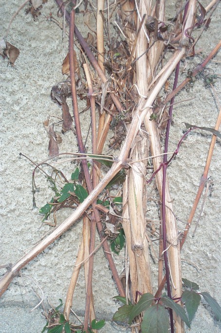 Je possède une clématite (Montana, on dirait, mais elle vient d'une bouture, alors...) depuis 4 ou 5 ans, sur ma façade (à l'est, elle est plantée dans les graviers du trottoir, c'est assez humide, climat Normand!)