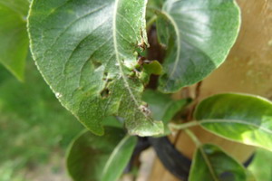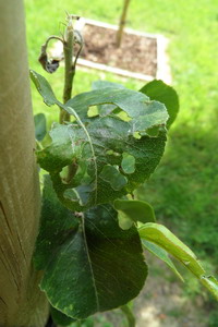 Feuilles jeune poirier rongées