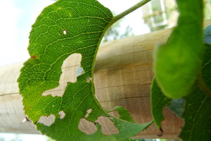 Sur un jeune poirier Beurre d'Hardempont planté cet hiver, j'ai plusieurs feuilles qui commencent à être rongées par je ne sais quoi.
