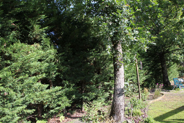 Tout d'abord je ne suis pas sûr que ce soit des Thuyas ou des Cyprès de Leyland (cf photos). Quelqu'un peut me confirmer l'essence ?