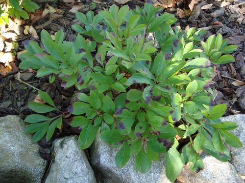 Mes pivoines n'ont que 3 ans mais à chaque fin de printemps elles ont systématiquement des taches noires sur la pointe des feuilles. Je ne sais pas si c'est une maladie ou un parasite...