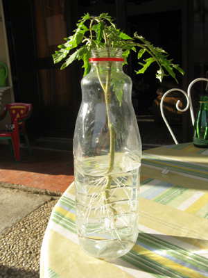Ceci dit, on peut aussi bouturer les tomates dans un simple verre d'eau...