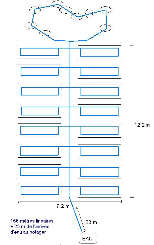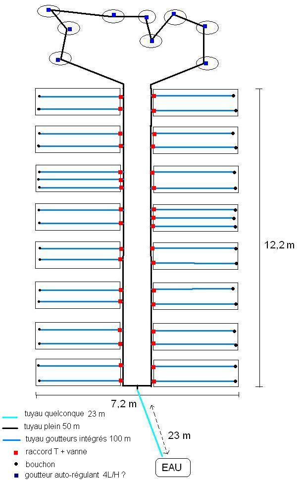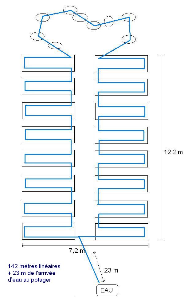 Je suis tout à fait d'accord, ça commençait à faire cher en T et en vannes !aygues31 a écrit :Les lignes secondaires peuvent être un aller et retour sur la parcelle (tomates) voire une ligne courbée 3 fois pour avoir 2 allers et retours (en une seule ligne d'arrosage) pour d'autres légumes à planter plus serrés dans l'inter-ligne (haricots, salades ...)