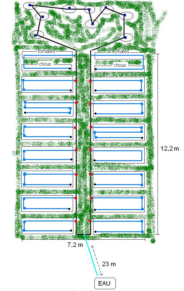En relisant ce lien : http://www.aujardin.info/fiches/arro/arro_potager.php , j'ai pensé faire comme suit : Mais dans ce cas, il n'y a pas de boucle sur chaque parcelle, est-ce gênant ?