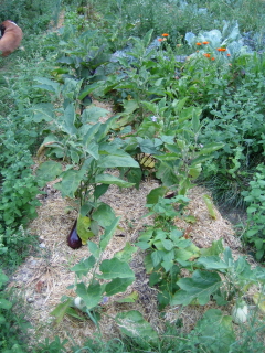 Une parcelle d'haricots verts Une parcelle salades/betteraves/poireaux Une parcelle d'aubergines
