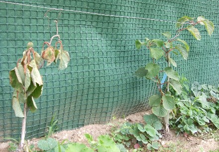 J'ai planté 5 pieds de kiwi à l'automne qui allaient très bien jusqu'à présent, mais depuis 1 semaine, 2 pieds font sale mine (dont 1 +++ qui m’inquiète très fortement) alors que les autres vont très bien