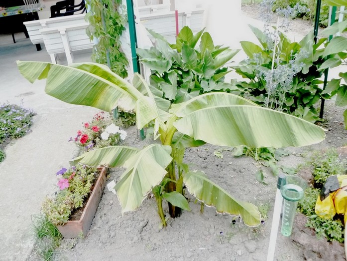 Aussi, on dirait qu'il est en plein soleil, et les bananiers ont des feuilles moches en plein soleil, comme délavées et toujours pliées en deux dans la journée, bref la plante n'est pas belle.