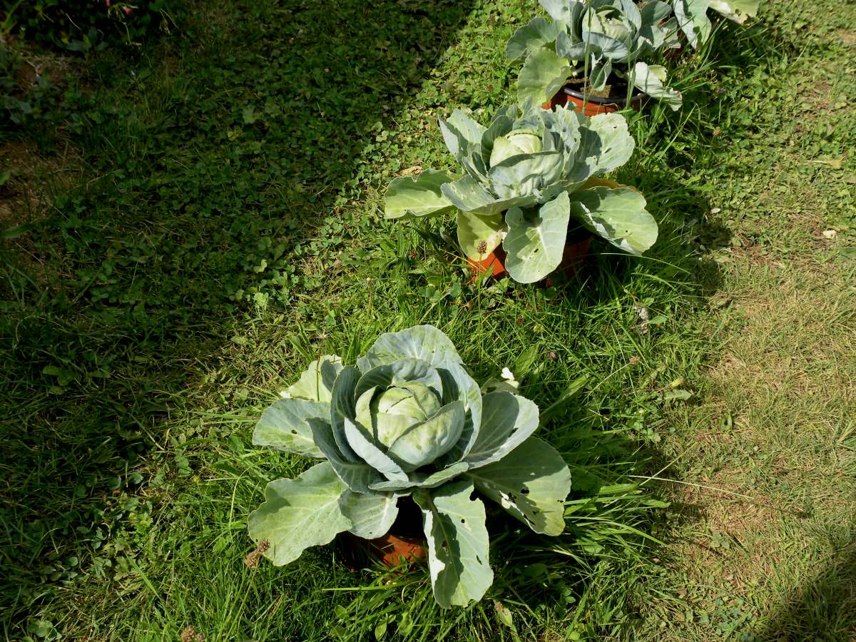 Mes choux dans les pots poursuivent leur lente croissance, bien sur surveillés par les piérides et les escargots.