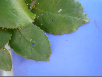 Maladie du rosier: tâches grises + trous dans les feuilles