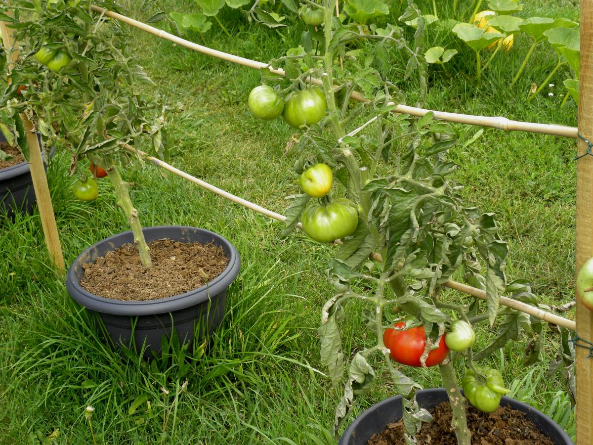3 - Dans des pots ø30cm x 33 cm de haut avec terre/fumier de cheval/terreau et engrais tomates.