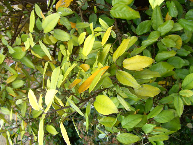 Je viens de regarder et effectivement c'est un persistant donc problème si jaunissement .Le mauvais drainage peut être la cause si le sol est imperméable.