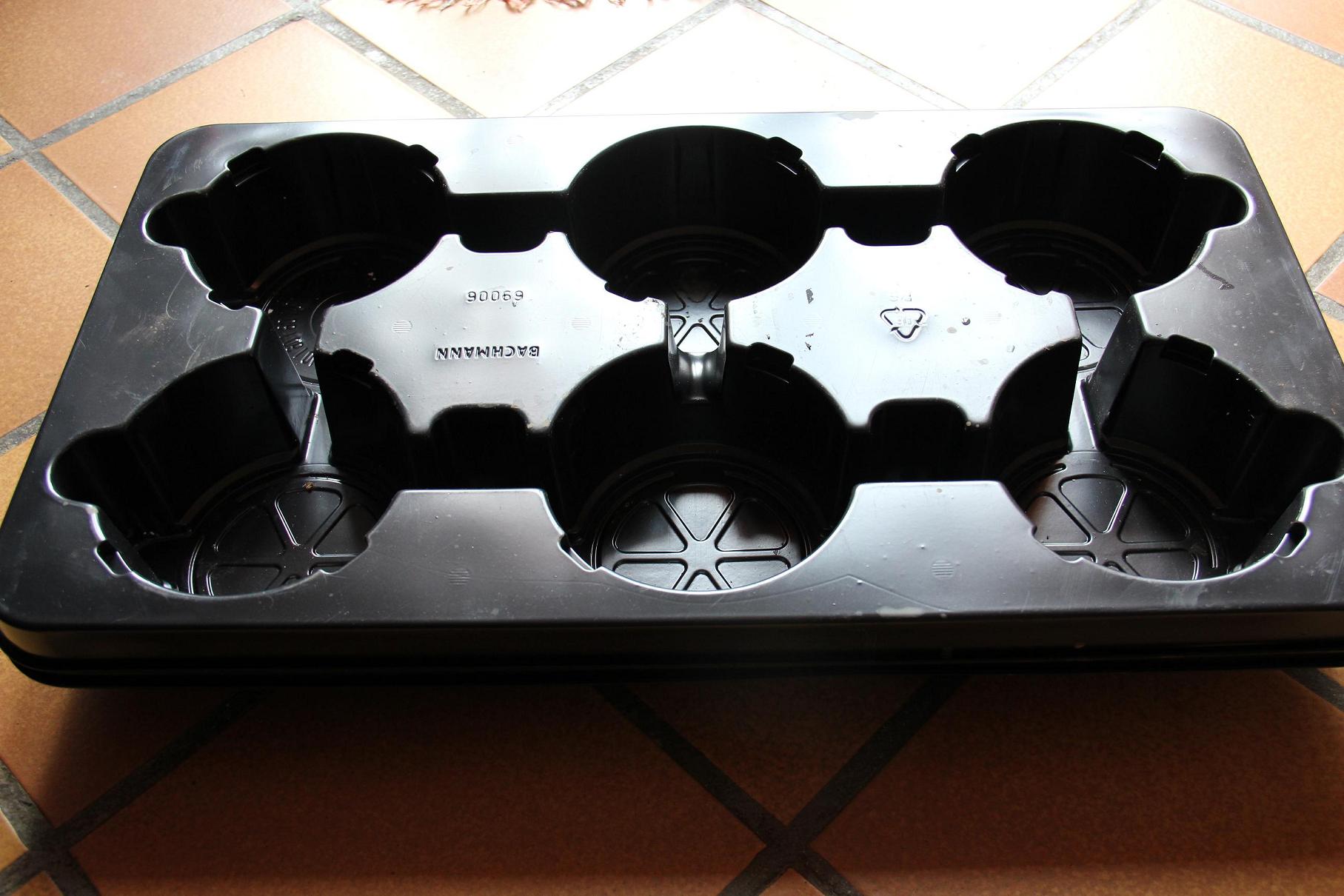 Les dimensions sont:diamètre/12cm et profondeur/7cm avec des perforations situées à 1 cm du fond,ce qui assure un trop plein en cas d'arrosage excessif(ce qui ne devrait jamais arriver sauf accident). Ces alvéoles doivent être propres. Les différentes variétés sont inscrites au marker sur le contenant et transcrites sur un support indépendant pour les retrouver en cas d'effacement.