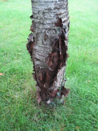 Bonjour, jai acheté une maison il y a un an avec un grand cerisier fleur qui est magnifique lorsqu'il fleurit; par contre, le tronc m'inquiète et je voudrais savoir de quelle maladie il s'agit et comment je pourrais la traiter ?