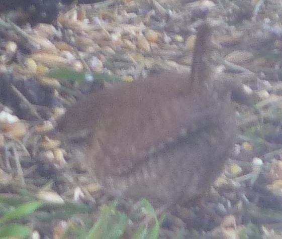 En tout cas , il sort de nulle part , on ne le voit pas partir , car il bouge très rapidement . Sa queue a l'air très courte et il semble tout rond . En tout cas , beaucoup plus petit que n'importe quel oiseau . Je l'ai vu partir sous la haie , il y a quelques jours . Je n'arrive pas à voir ce qu'il mange .Il y a des graines par terre ....Si la photo vous dit qq chose , j'aimerais bien savoir de quel oiseau il s'agit . Apparemment , ce n'est pas un bébé car il se débrouille comme un grand