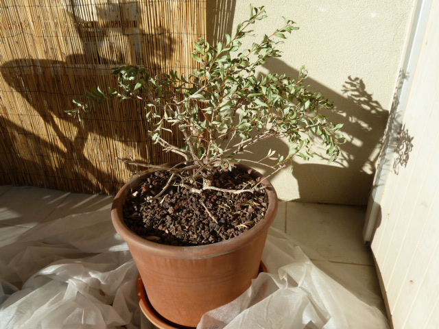 Je n'ai pourtant pas l'impression qu'il soit mort: en prévision du froid je l'avais entouré d'un voile d'hivernage, ramené le pot contre le mur et isolé le pot du sol avec du polystyrène.