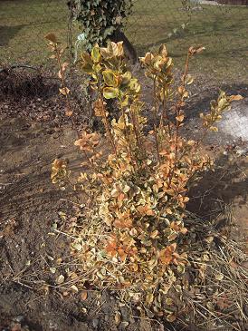 J'avais planté une haie vive en automne, , composée entre autres d'un fusain et d'un photinia, que j'avais protégé du froid avec de la paille.
