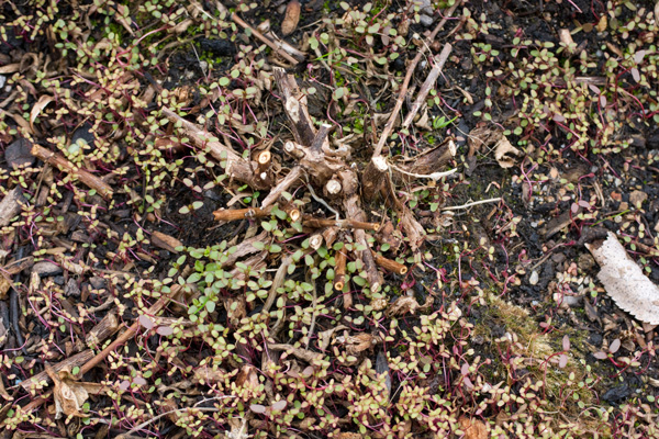 Ca m'a juste surpris d'avoir cette quantité de micro pousses, dont une forte concentration autour d'une fleur fanée et tombée à terre.