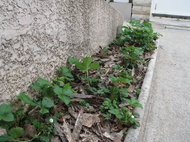 Vu d'ensemble : le tout fait environ 100m², il y a encore du travail pour affiner la terre et retirer les cailloux sur la 3ème planche L'ail qui pointe le bout du nez : Les framboisiers et groseillers : et pour finir un espace supplémentaire et bien délimité pour les fraisiers : @+