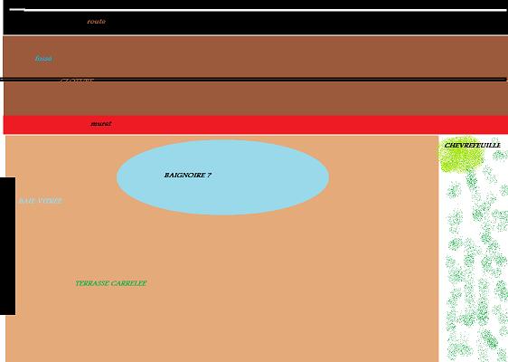 je voudrais donc mettre une baignoire le long du muret (80cm de hauteur) afin de cacher un peu la route... j'habite dans le sud, entre la ville et la station balnéaire du coin. l'été quand c'est embouteillé, les gens ont pleine vue sur mon jardin et sur nous en train de bronzer, manger, jardiner etc...