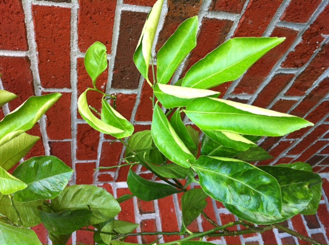 Donc depuis (cf les photos), l'arbre est anemique, plus aucune pousse de nouvelles feuilles ou alors celles commences sont gelees dans le temps. On dirait que certaines vieilles feuilles deviennent plus fines, se vident de leur substance). Les plus jeunes feuilles sont vert clair et ne grandissent plus. Les plus vieilles ont de subtiles taches vert claires. Il fait triste figure.