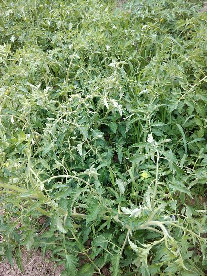 En bref, tes plants ont sans doute manqué de nourriture, mets une poignée d'engrais bio ou non, "spécial tomate", au pied de quelques pieds et griffe un peu en surface, pour tester. Si dans quelques jours des feuilles plus vertes se forment sur les pieds engraissés, tu peux en ajouter ensuite (dans 2 ou 3 semaines) une autre de partout.