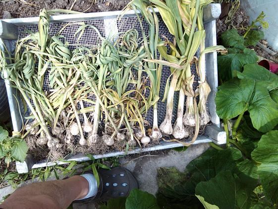 l'ail élèphant ,comme tous les aulx , reste sensible aux maladies. repiqué en novembre, les aulx blancs, cette annèe mon résultat est moyen. Comme le terrain est fortement mouillé, il est tombé autant de pluie en 1 jour qu'en 1 mois, je vois que certains aulx avaient tendance à la graisse. il fallait donc arracher.