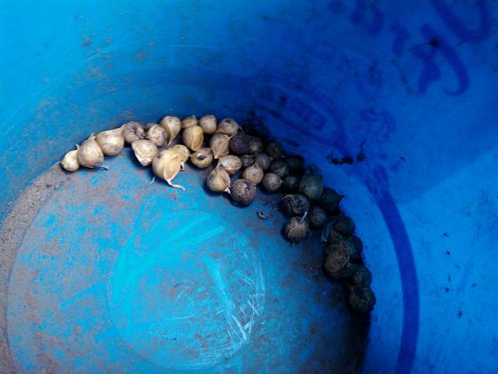 aujourd'hui ,les cormus récoltés sous les tête d'aulx ,vont être repiqués ce soir à la fraîche. ils donneront, pour certains ,d'autres aulx.