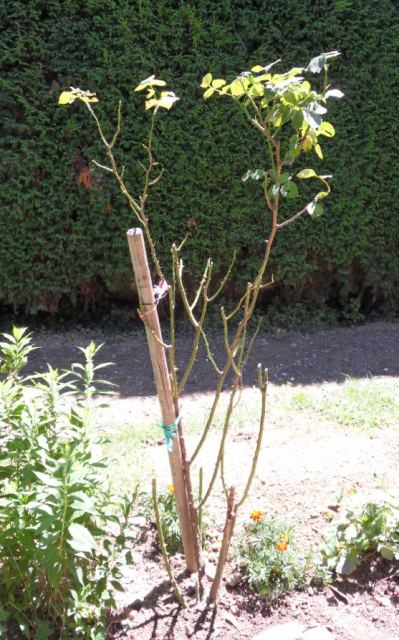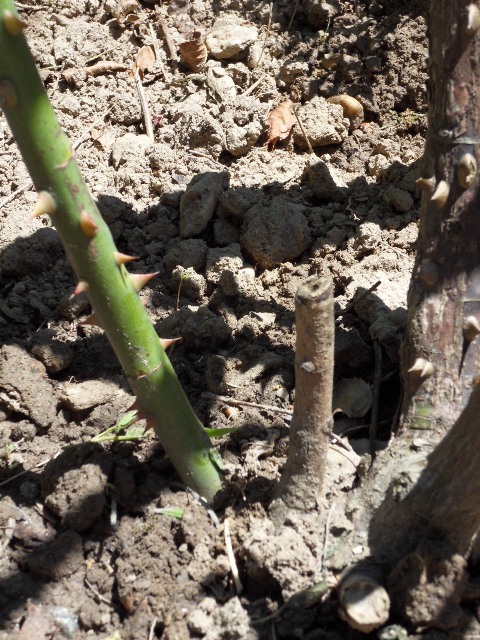 J'ai bon espoir de voir repartir mon rosier car il me semble voir de toutes petites pousses. Mais quand même ces 2 grandes tiges m'intriguent.