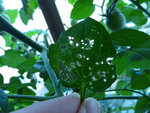 J'ai detecté des toiles d'arraignée autour de feuilles/tomates, j'ai traité de suite, ca semble avoir bien marché, mais pour le reste...