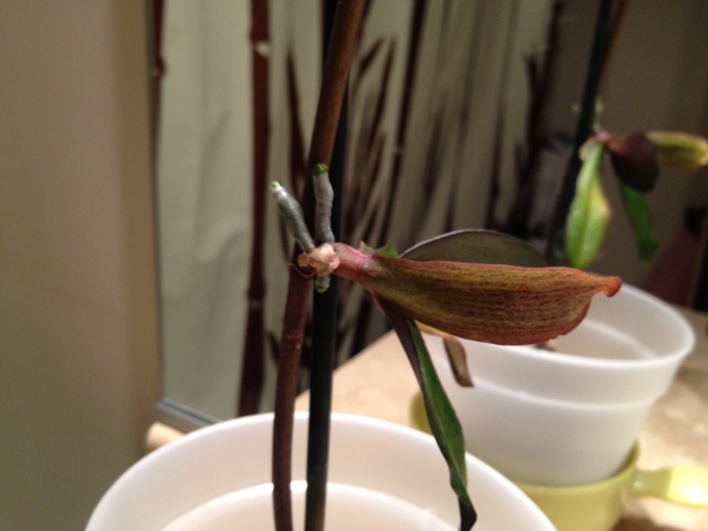 Le keiki va recuperer les nutriments contenus dans la plante, dans les feuilles mais il n y en a plus .... il reste la hampe defleurie ..... ce n est pas beaucoup.