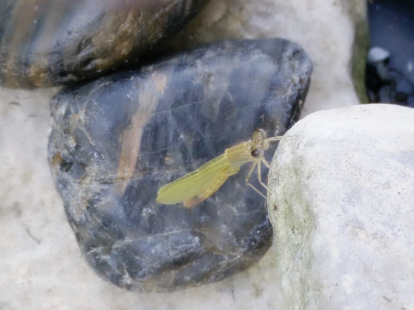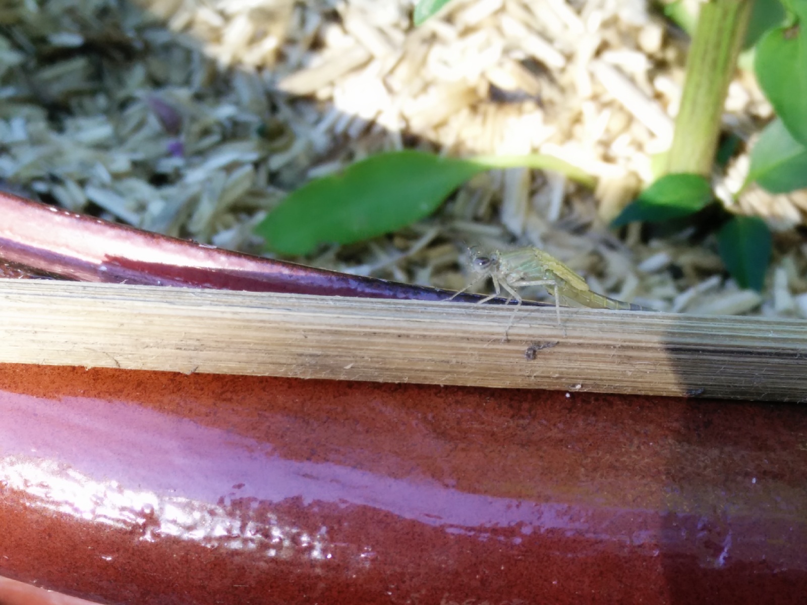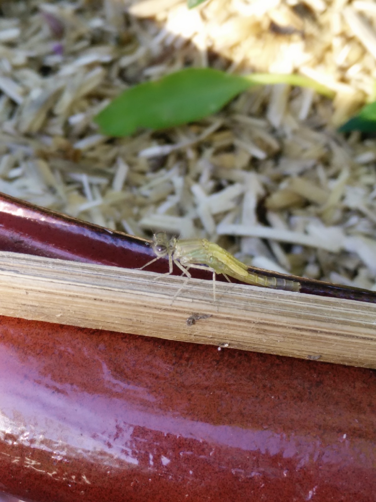 J'ai eu la chance, hier, d'apercevoir au détour d'un regard, une demoiselle se faire sécher les ailes avant son premier envol.
