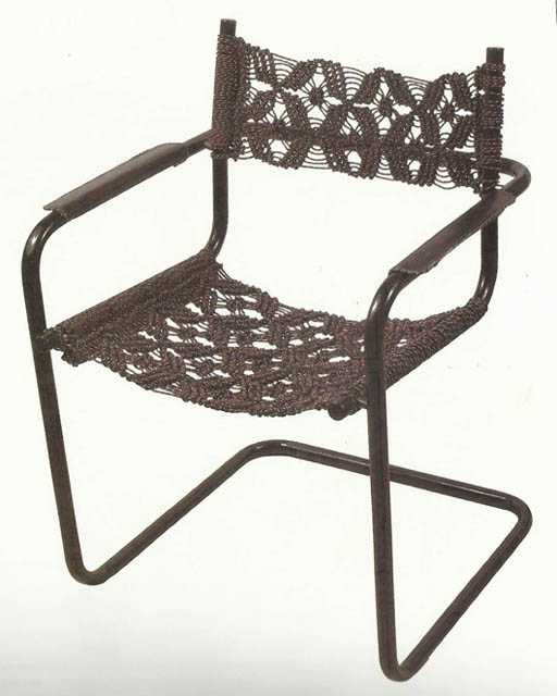 Il y a quelques temps, j'ai trouvé 4 chaises avec une structure tubulaire et l'assise et le dossier en osier. Mais voilà, en fait l'osier est tout cassé et j'aimerais les refaire mais en macramé. Alors j'ai fait quelques recherches, j'ai trouvé un modèle de chaise qui ne me plait pas (je vous le met en pièce jointe).