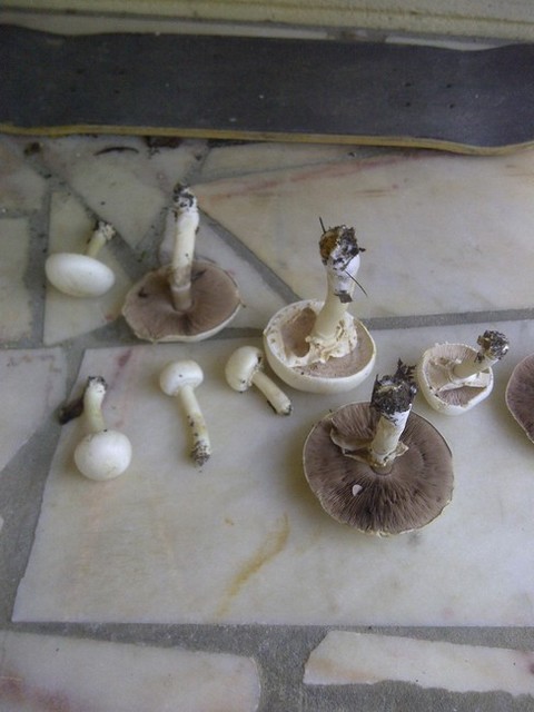Étant habitué à ramasser des champignons en foret, je ne le suis que peu à reconnaitre les autres. Les plus jeunes ont des lamelles blanches alors que pour les plus vieux celles ci brunissent.