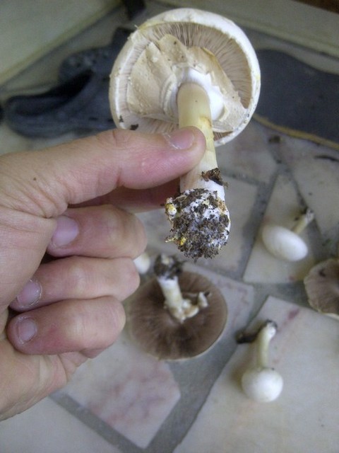 Je l'aurai coupé au couteau (comme je fais d'habitude) au lieu de le ramasser à la main, l'indice aurait été flagrant. Alors que là , j'ai failli faire une poêlée. Bonjour les troubles intestinaux. De plus, complétement oublié que les jeunes Rosé des prés avaient les lamelle roses.