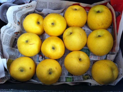 Les pommes plus hautes que larges ... c'est comme la production de viande !!!Pomona a écrit : je ne sais pas pourquoi mes pommes (à gauche) sont plates et n'ont pas la forme normale qu'on connait aux golden, comme la pomme à droite.