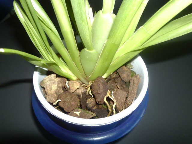 Il n'a pas assez de pseudobulbe pour le séparer : il faut qu'il ait au moins 6 pseudobulbes et 2 pousses (chaque nouvelles plantes : 3 pseudobulbes et 1 nouvelle pousse)
