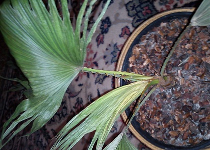 Le palmier devrait se plaire sans eau au pied. Le substrat devrait même sécher sur quelques centimètres entre 2 arrosages.