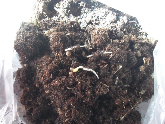 Les graines ont encore grandi!!!!Il y a maintenant une petite tige avec une "feuille" au bout! Je les mettrai en pot ce week-end, en espérant ne pas les tuer....