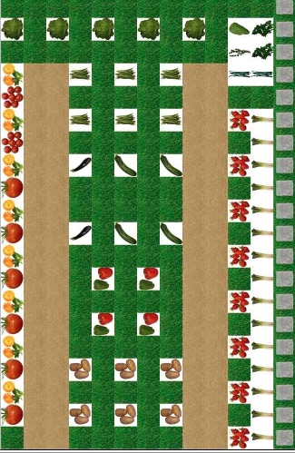 Salade, poireaux, carottes,navet, radis....etc ne prennent pas beaucoup de place, mais si vous mettez des pieds de courgettes par exemple, mettez les plutôt en bout de jardin, car il leur faut de la place- L'été dernier, mes pieds faisait plus d'1,20m de diamètre.