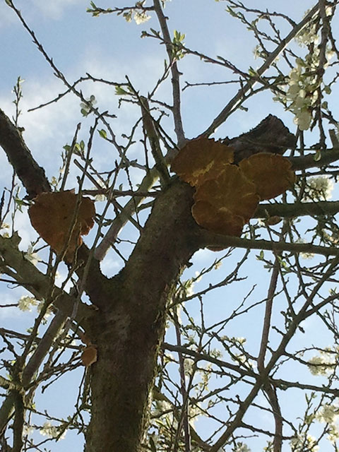 bonjour voila , j ai découvert sur un arbre dans mon jardin des champignons , j aimerais bien savoir si ces graves et si il est condamner , pourtant il fleurie encore. merci de vos réponses. :cry:
