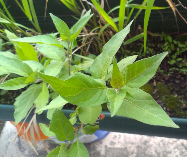 Je suis novice en matière de jardinage. L'année dernière cette plante a poussé après que j'ai semé quelques graines. J'ai pensé qu'il s'agissait d'un pied de tomate car : 1. j'en avais semé et 2. il y a eu un tout petit fruit (un demi centimètre) rouge. Etant donné que je ne m'en suis pas occupé j'ai pensé qu'il s'agissait d'une pauvre petite tomate qui n'avait pas eu ce dont elle avait besoin pour grandir et se développer.