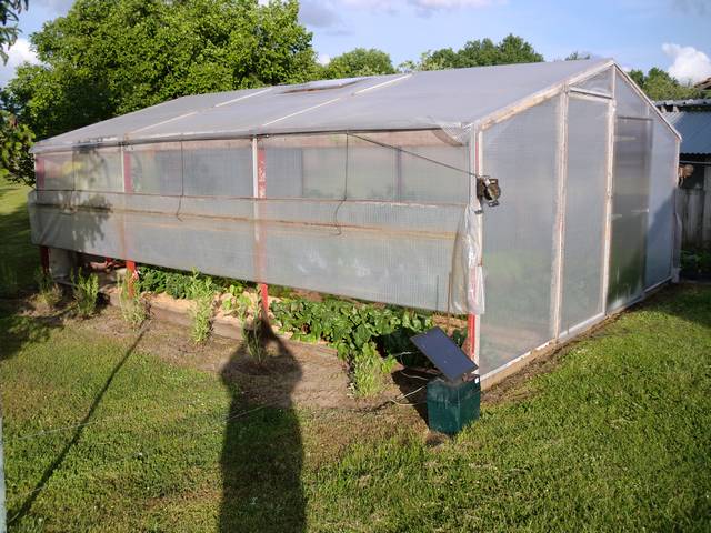 La serre serait bâchée, à vue de nez 4m x 6 ou 8m, exposée vent, plein sud dans un climat à peu près lyonnais ( c'est à dire londonien depuis début 2012 !!! ), l'idée est d'y faire tomates, poivrons, melons et autres gourmands de chaleur sans pluie.