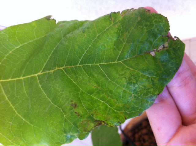 Depuis 1 ou 2 mois, avec l'arrivée des beaux jours, il recommence à faire des feuilles, mais voilà, elles semblent être rongées, hors je ne vois rien sur les feuilles (ni chenilles ou insectes quelconque)