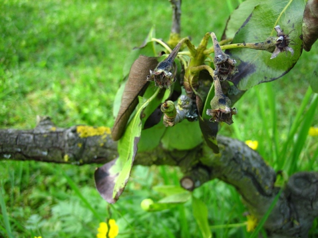 Mon poirier a eu une attaque et deux de ces trois branches sont dans le même état que les photos.