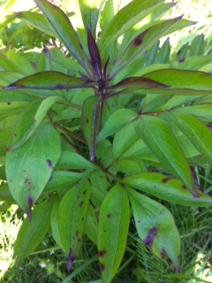 ma pivoine (herbacée) est malade. Les tiges et les feuilles sont piquées de tâches brunes, les boutons sont complètement flétris. cf photo. Comment traiter cette maladie et éviter la propagation aux autres pivoines à proximité ? merci d avance pour vos bons conseils.