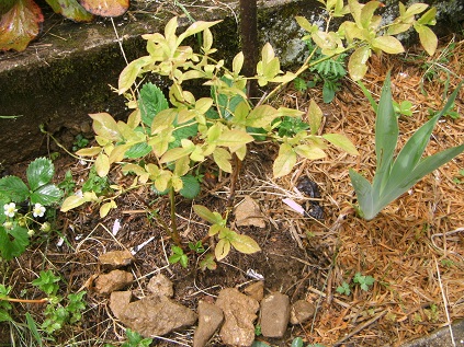 je les ai planté l'annee derniere en automne, la taille du trou je ne m'en souviens pas. Les problemems de ph, je me doutais bien que ca arriverais un jour, je pensais pouvoir y remedier par un apport de souffre, de terre de bruyere, d'aiguille... mais la ca fait vraiment tôt par rapport a mes previsions