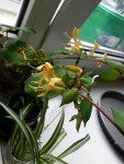 Sur la terrasse du restaurant qui se trouve à côté de chez moi, il y au un bac avec une plante grimpante. J'en ai pris quelques tiges pour en faire des boutures car l'odeur des fleurs ressemble à celle du jasmin. Et j'adore le jasmin mais je ne peux pas le cultiver dans ma région. Les fleurs sont jaunes à jaune clair. C'est une plante grimpante.