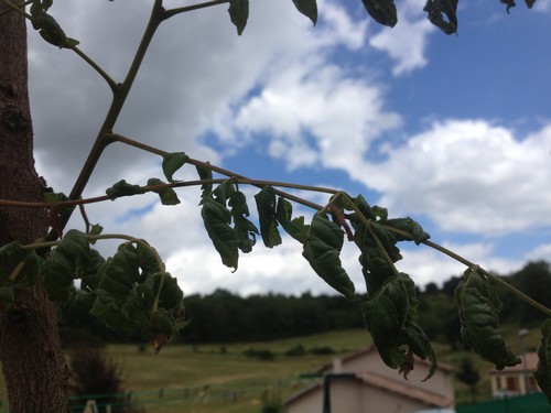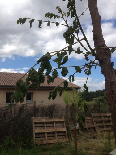 Nous avons planté un savonnier ce printemps (racines nues acheté près de chez nous). Il était très bien parti mais depuis quelques temps les feuilles ont tendance à se recroqueviller. C'est peut être pas forcément anormal mais bon je préfère être sûre.