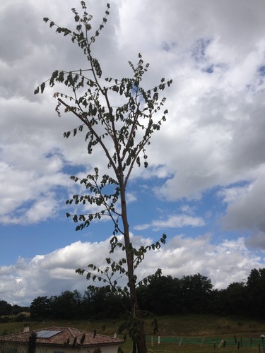 Je confirme ce que dit Ker-asie. Ce que tu peux faire: Une grosse cuvette de terre autour de ton arbre, que tu remplie d'eau au moins une fois par semaine. N'hésite pas sur la quantité d'eau, il peux avoir besoin de 300 ou 400 litres d'eau. De toute manière, le savonnier fait un peu comme l'hortensia, quand il manque d'eau les feuilles se mettent en position "verticale" pour ne plus subir la lumière et ainsi moins transpirer. Dés que tu arroses, les feuilles se "redressent".ker-asie a écrit :je pense qu'il a soif : mais la reprise d'un arbre d'une telle grosseur (taille du tronc en diamètre)en racine nue et très difficile surtout avec les chaleurs de l'été, il peut donner l'illusion d'être reparti et dépérir progressivement , en racine nue il ne faut pas acheter si grand trop de risque pas impossible mais trop risqué